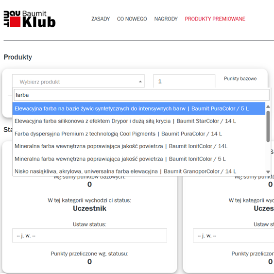 Punkty promocyjne nie podlegają przeliczeniom ze względu na aktualnie posiadany status w Baumit Klub.