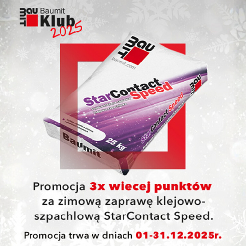 Akcja dotyczy zakupów dokonanych w okresie od 01.12 do 31.12.2025 i zarejestrowanych w Baumit Klub w regulaminowym terminie.