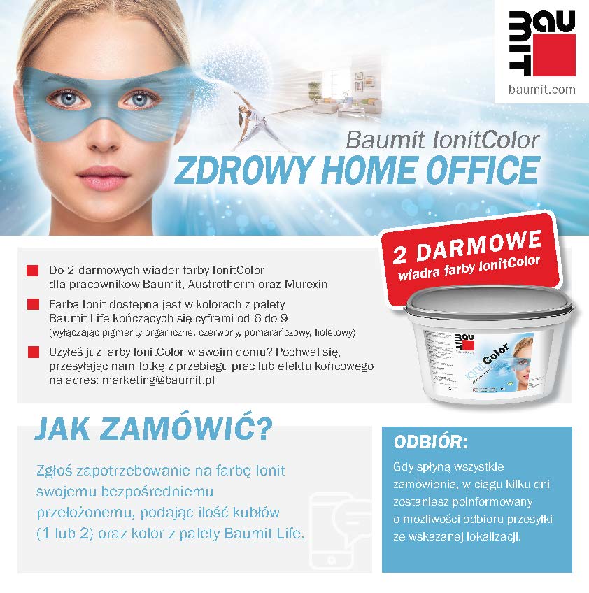Chcemy, by nasze życie było zdrowsze. Szczególnie w tym czasie powinniśmy zadbać o naszą dietę i powietrze, którym oddychamy, ponieważ ten wirus unosi się w powietrzu. Codziennie wdychamy ok. 10-20 kg powietrza. Jak Państwo wiedzą, kilka lat temu opracowaliśmy technologię jonowych farb Baumit Ionit, które pomagają zachować świeżość i czystość powietrza w pomieszczeniach i mają dobry wpływ na nasze samopoczucie.