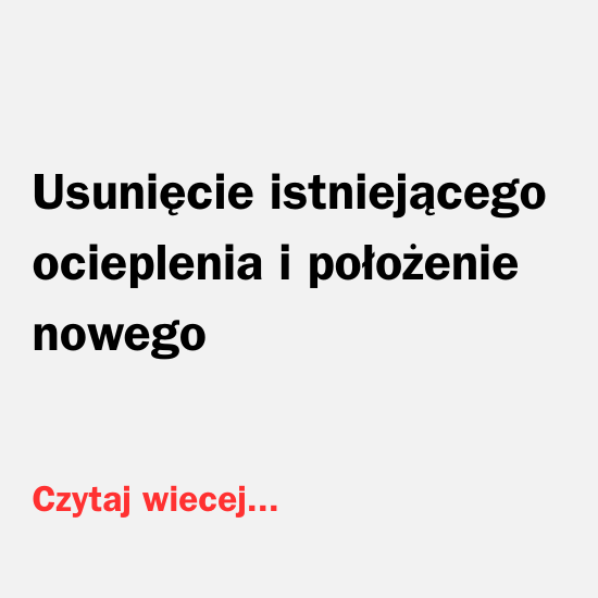 Zwiększenie wartości termoizolacyjności ścian można dokonać na dwa sposoby: pierwszym jest zdemontowanie istniejącego ocieplenia i montaż nowego, drugim zaś dołożenie dodatkowej warstwy izolacji cieplnej wraz z wykończeniem. Choć ta druga opcja wydaje się prostsza i tańsza należy pamiętać, że nie zawsze jest możliwa do wprowadzenia w życie. Stosowanie docieplenia na istniejące ocieplenie jest możliwe wyłącznie po pozytywnej ocenie nośności i stabilności zarówno podłoża, jak i istniejącej izolacji poprzez dokonanie tzw. odkrywki.